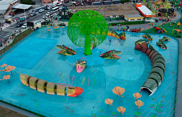 Para combater o calor intenso de Manaus, o parque possui a maior praça molhada da cidade, com 3,6 mil m², onde todos podem se refrescar e reviver a alegria de ser criança.
